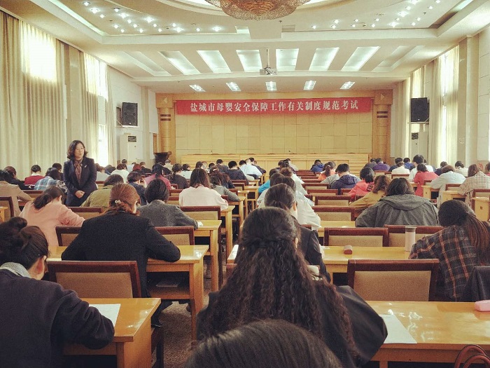 本次考试采取闭卷答题形式,考试内容包含《江苏省高危孕产妇管理规范》、《盐城市规范孕产妇和新生儿危急重症转诊救治工作方案》、《关于进一步加强母婴安全保障工作精细化管理的通知》等省、市母婴安全保障有关制度、规范,以及产科临床知识。市卫健委组织机关工作人员赴各县(市、区)监考。